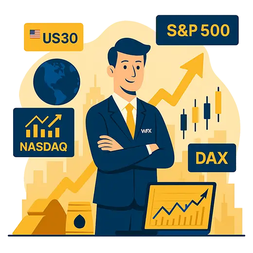 - US Indices: S&P 500, NASDAQ 100, Dow Jones